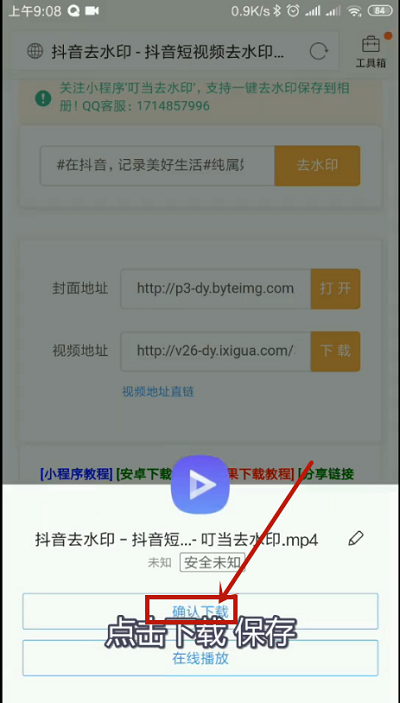 1.打开下载链接直接播放视频:一般是因为浏览器直接识别视频文件使用内嵌播放器播放导致,1)、直接复制视频链接,在浏览器下载管理新建下载;2)、使用QQ浏览器打开当当去水印平台进行解析!